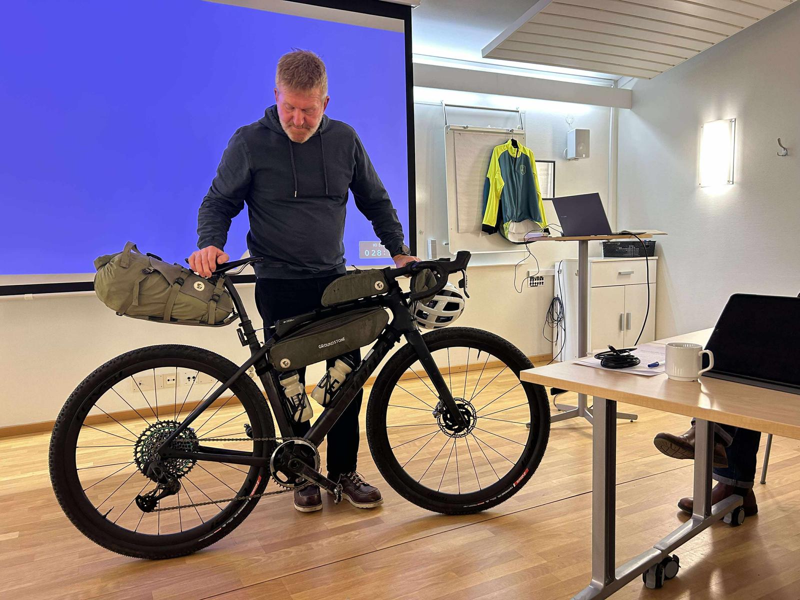 Magnus visade upp sin cykel som han körde med i Chile